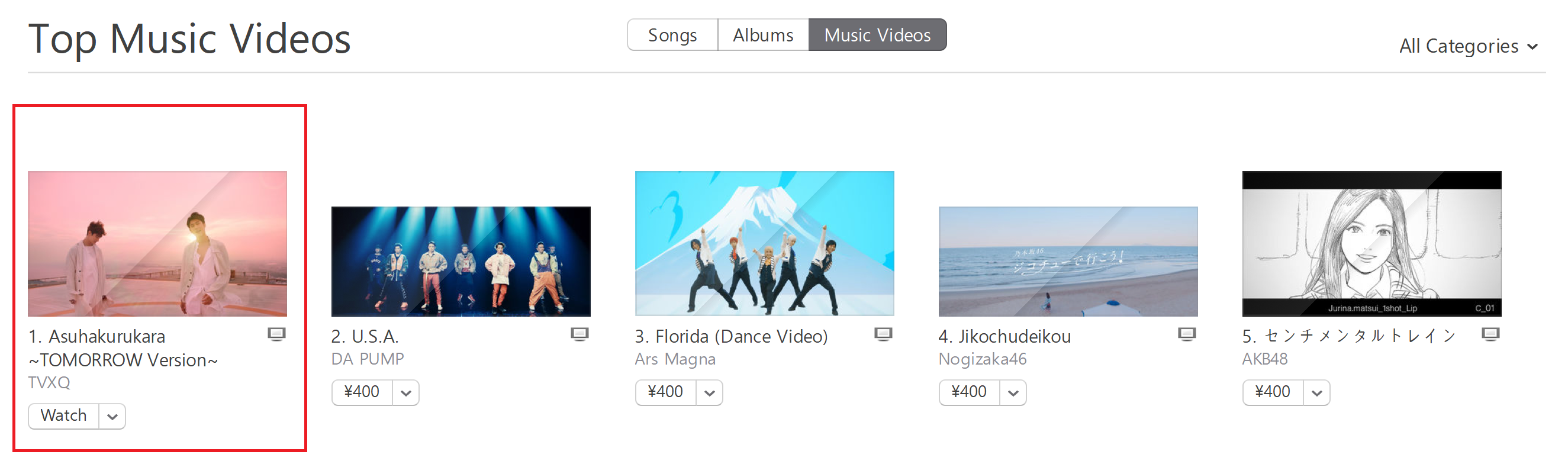 Tohoshinki’s Asu wa Kuru Kara 明日は来るから ~TOMORROW Version~ music video spotted at No.1 (04:30 pm) on iTunes Japan top music videos (all categories)!