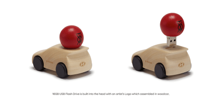 A Hyundai Collaboration with SM Entertainment which is a USB wood car (16 GB) decorated with the logo and color of each artist!