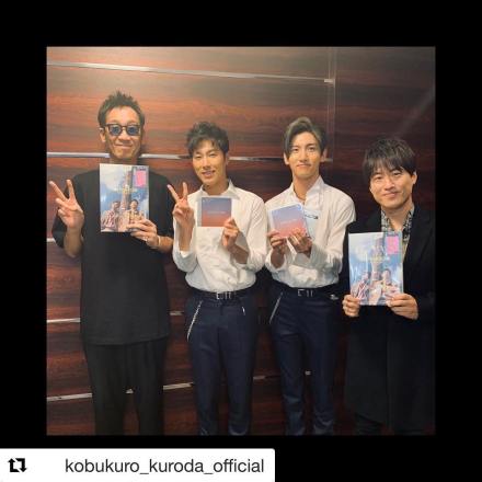 Japanese duo band Kobukuro’s Kuroda-san (the 193cm-tall man) posted (here) a photo of them with Tohoshinki exchanging albums, and Changmin reposted it adding comments about the band ^^