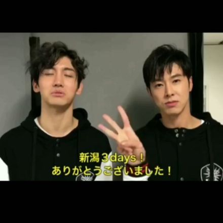 Tohoshinki backstage at TOKI MESSE Niigata Convention Center in a video for「東方神起 LIVE TOUR 2018 ~TOMORROW~」premium seat fans.