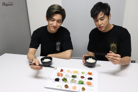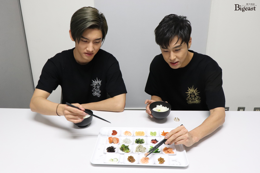 Tohoshinki trying the dlecious Niigata rice with different toppings~ ^^