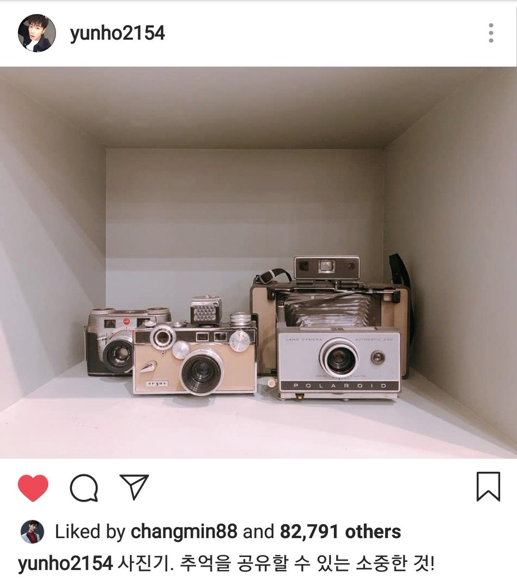 {t/n: Yunho used the original Korean word for cameras “사진기” instead of the English word “카메라 (camera)”, which seems to be used often with the old fashioned (film) cameras}
