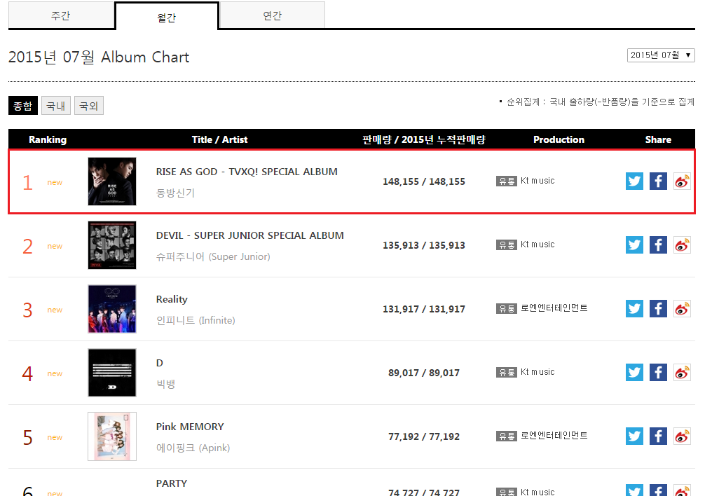 On July 20, TVXQ released its special album ‘RISE AS GOD.’ It placed first on the Gaon Chart weekly album and was also first for the month of July, showing its tremendous power as Asia’s best group.