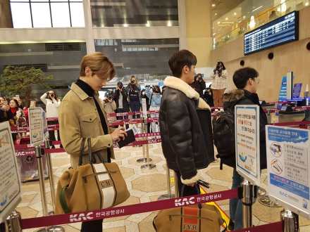 It seems he also was with actor Jo Jaeyoon (in red) at Jeju airport too.