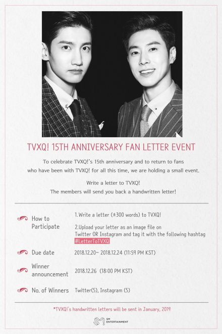 TVXQ! 15th anniversary Fan Letter Event ANNOUNCED!!