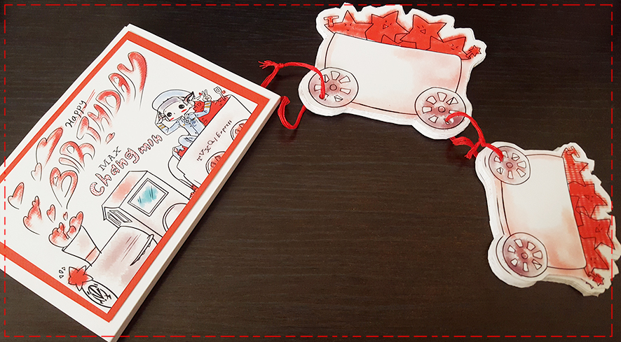 Below, we took some photos of the card’s final look! It is similar to the one we designed for Yunho’s in which the card symbolizes our TVXQ Express train!