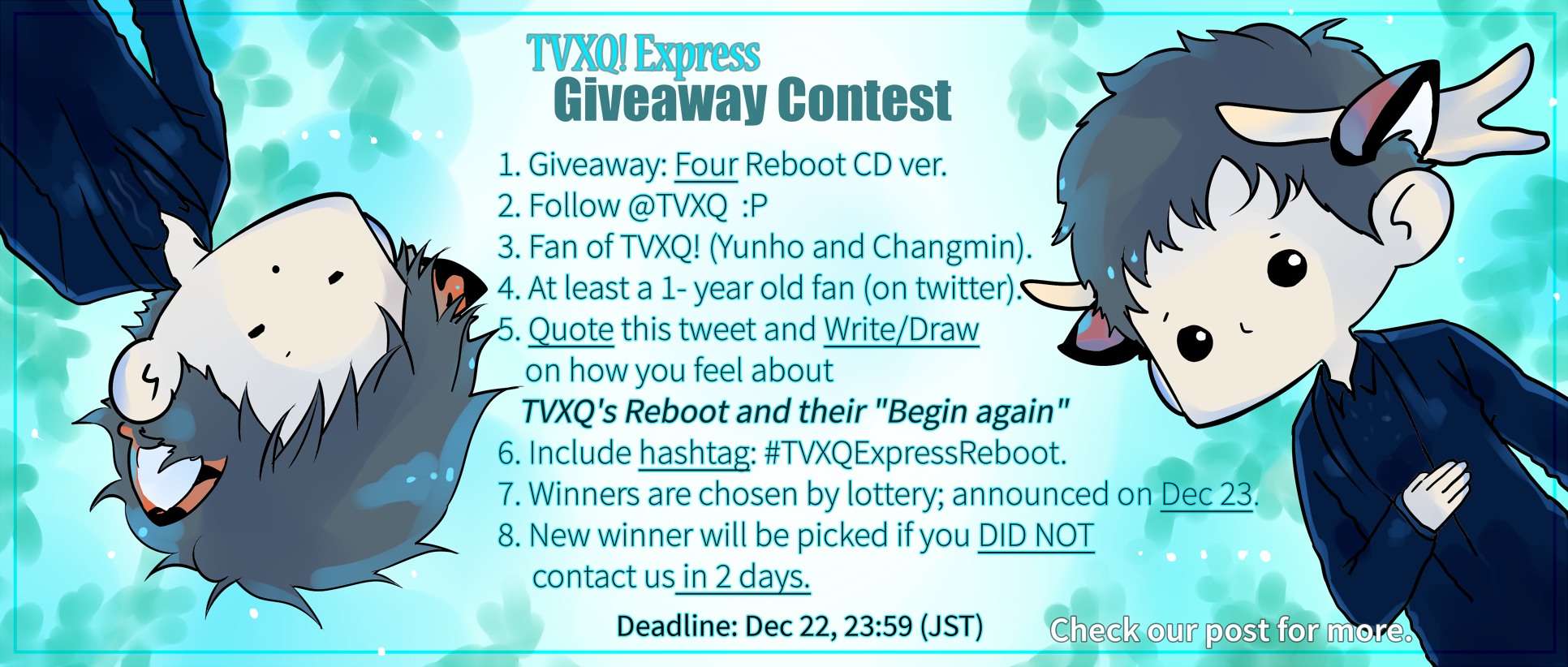 [NOTICE] New Giveaway Contest: Reboot “Begin Again with TVXQ!” (Twitter Only) (Deadline 12/22, 23:59 JST)
