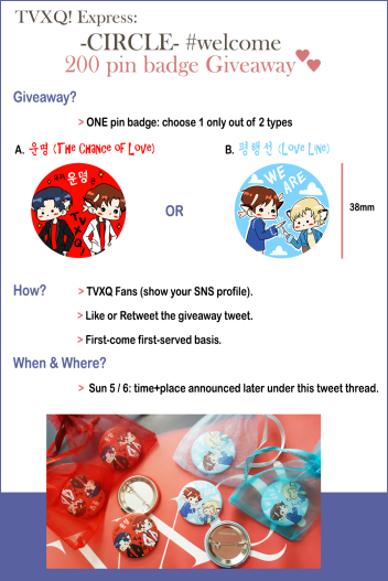 [NOTICE] ❤ Giveaway: TVXQ! CONCERT -CIRCLE- #welcome’ 200 Pin Badges ❤