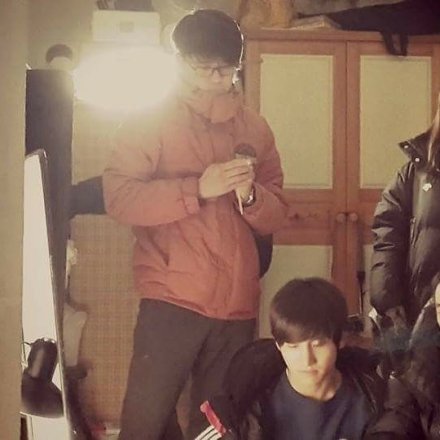 Changmin with the artist stand-in for him during the filming of MiMi ~ (he was the hand double for Min-woo when he drew)