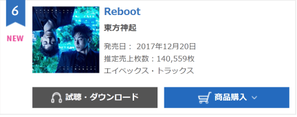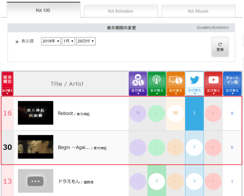 For the week of 2018/1/29, 東方神起 Reboot and Begin yet again topped the Billboard Japan Hot 100 Twitter ranking, marking it the 5th week since release~ > w <, with Reboot ranking as No.16 for Hot 100 overall and Begin ~Again Version~ in Top 30. The Reboot single ranked No.40 for Billboard Japan Weekly Top Singles Sales.