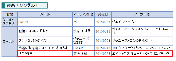 Tohoshinki (東方神起) SAKURAMICHI has been certified GOLD by RIAJ (Recording Industry Association of Japan)