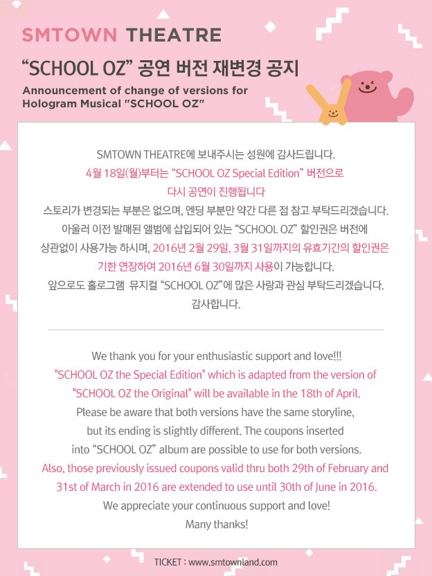 Please be aware that both versions have the same storyline, but its ending is slightly different. The coupons inserted into “SCHOOL OZ” album are possible to use for both versions.