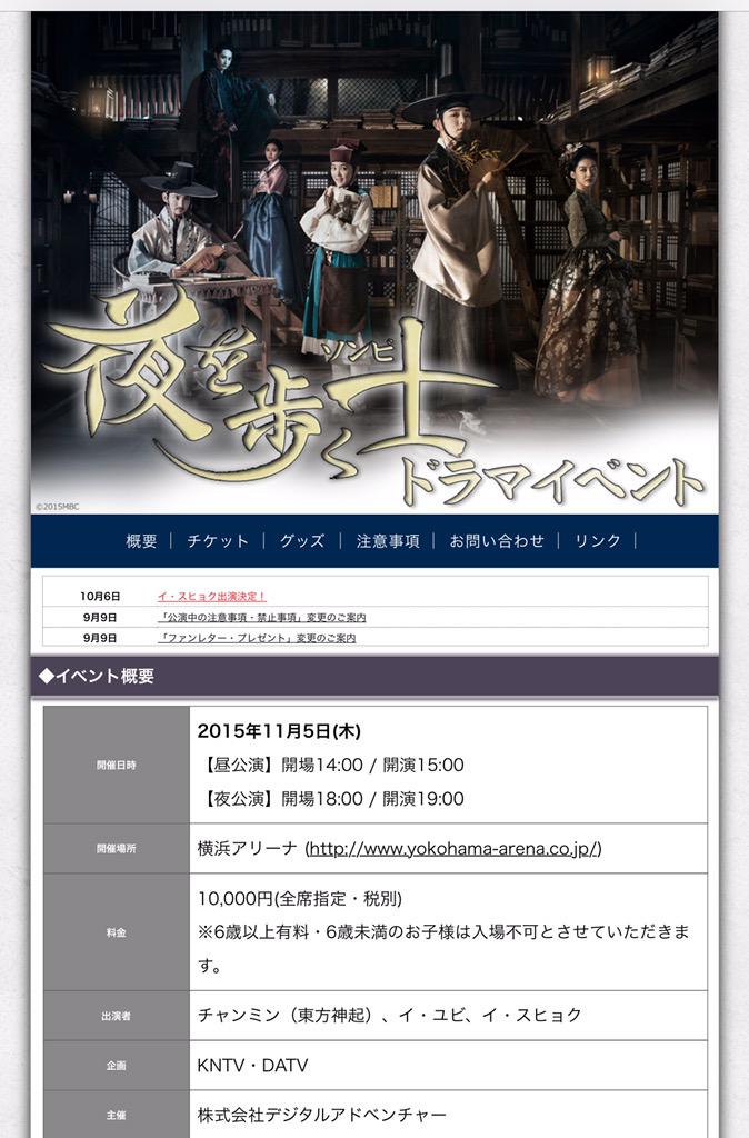 Actor Lee Soohyuk to join Changmin and Lee Yubi in the “Scholar Who Walks the Night” drama event in Yokohama Arena on 151105!