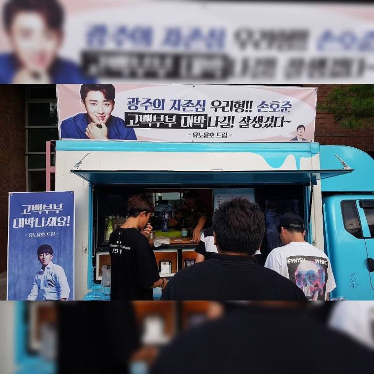 Yunho sent a coffee truck to support his friend actor Son Hojoon drama “Confession Couple”, the one which Yunho had a cameo in~
